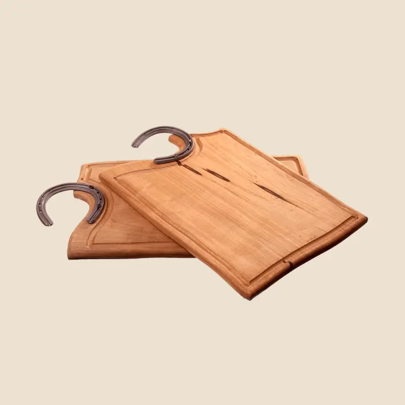 Each handmade cutting board is crafted from premium hardwoods such as maple, walnut, or cherry, providing a smooth and durable surface that’s gentle on knives. Perfect for meal prep or presentation, the board features a juice groove to catch any spills and a handle for easy transport. These boards are finished with food-safe oil, enhancing the natural beauty of the wood.